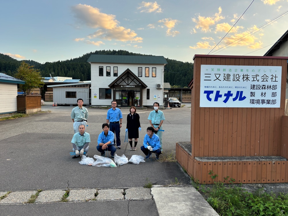9月27日に横手本店周辺のクリーンアップ活動を実施しました。最近は落ちているゴミが少なくなりましたので、工事現場周辺や製材工場周辺に社員を分散し毎月1回クリーンアップ活動を実施いしています。